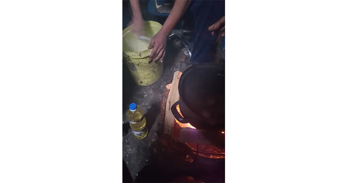 Wali und andere Bewohner des verlassenen Gebäudes versuchen selbst Tee und Brot zuzubereiten.