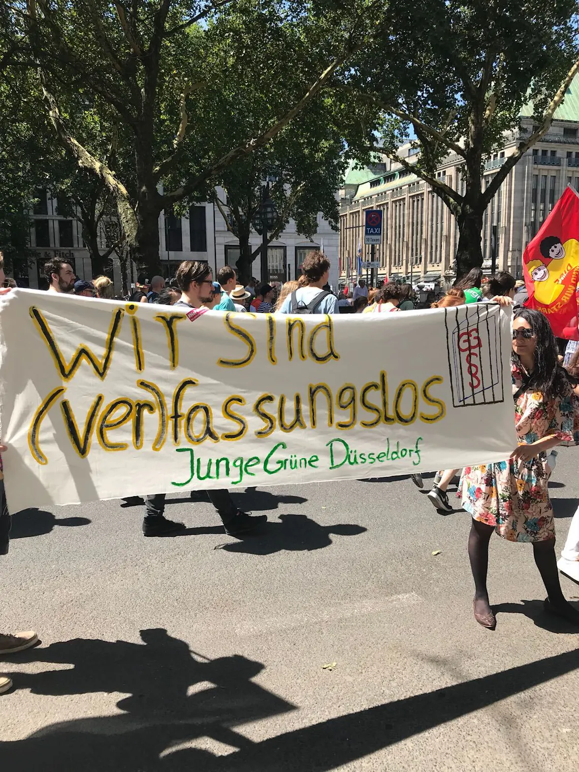 In Düsseldorf herrscht am Samstag Ausnahmezustand. Die Straßen rund um die Innenstadt sind gesperrt, die Bahnen stehen still. Denn rund 10.000 Demonstranten ziehen vom Düsseldorfer Hauptbahnhof bis zum Sitz der Landesregierung, um gegen die Verschärfung des Polizeigesetzes in Nordrhein-Westfalen zu protestieren. Aufgerufen und mobilisiert zu den Protesten hatte das Bündnis „Nein! Zum neuen Polizeigesetz in NRW“ - darunter Gewerkschafter, Grüne, Linkspartei, Piraten, christliche Gruppen, Antifa, Amnesty International sowie Fußballfans aus dem ganzen Bundesland.
