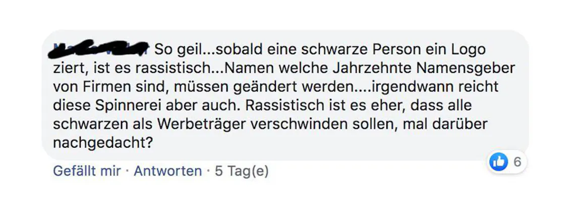 Wer eine rassistische Handlung benennt, wird deshalb oft selbst als Rassist diffamiert. Eine Art Täter-Opfer-Umkehr: Rassistisch sei nicht, wer Schwarze Menschen als Wilde darstellt, sondern wer„Mohren“ aus Wappen entfernt und ihnen damit die „Sichtbarkeit“ nimmt; rassistisch sei nicht, wer „Mohrenkopf“ sagt, sondern wer das als Rassismus interpretiert.