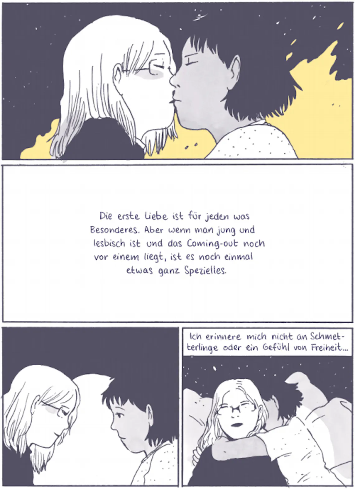 Tillie Walden: Es war natürlich extrem schwierig. Es ist ja schon schwer, wenn man sich im echten Leben angreifbar macht. Und dann ist es noch etwas schwerer, wenn man sich in einem Buch verletzlich zeigt, das veröffentlicht wird. Deine Verletzlichkeit wird sozusagen verewigt. Ich musste mich während des Schreibens und Zeichnens immer wieder daran erinnern, dass ich das wirklich wollte. Natürlich gibt es immer Konsequenzen, wenn du eine Geschichte wie meine erzählst. Aber ich habe für mich beschlossen, dass ich niemals eine Entscheidung von Angst abhängig machen will. Ich wollte die Geschichte wirklich erzählen und mir war es auch wichtig, dass andere Menschen die Geschichte lesen können. Deswegen habe ich beschlossen, es einfach auszuprobieren und dabei so ehrlich und zurückhaltend wie möglich zu sein. Und bislang lief auch wirklich alles gut.