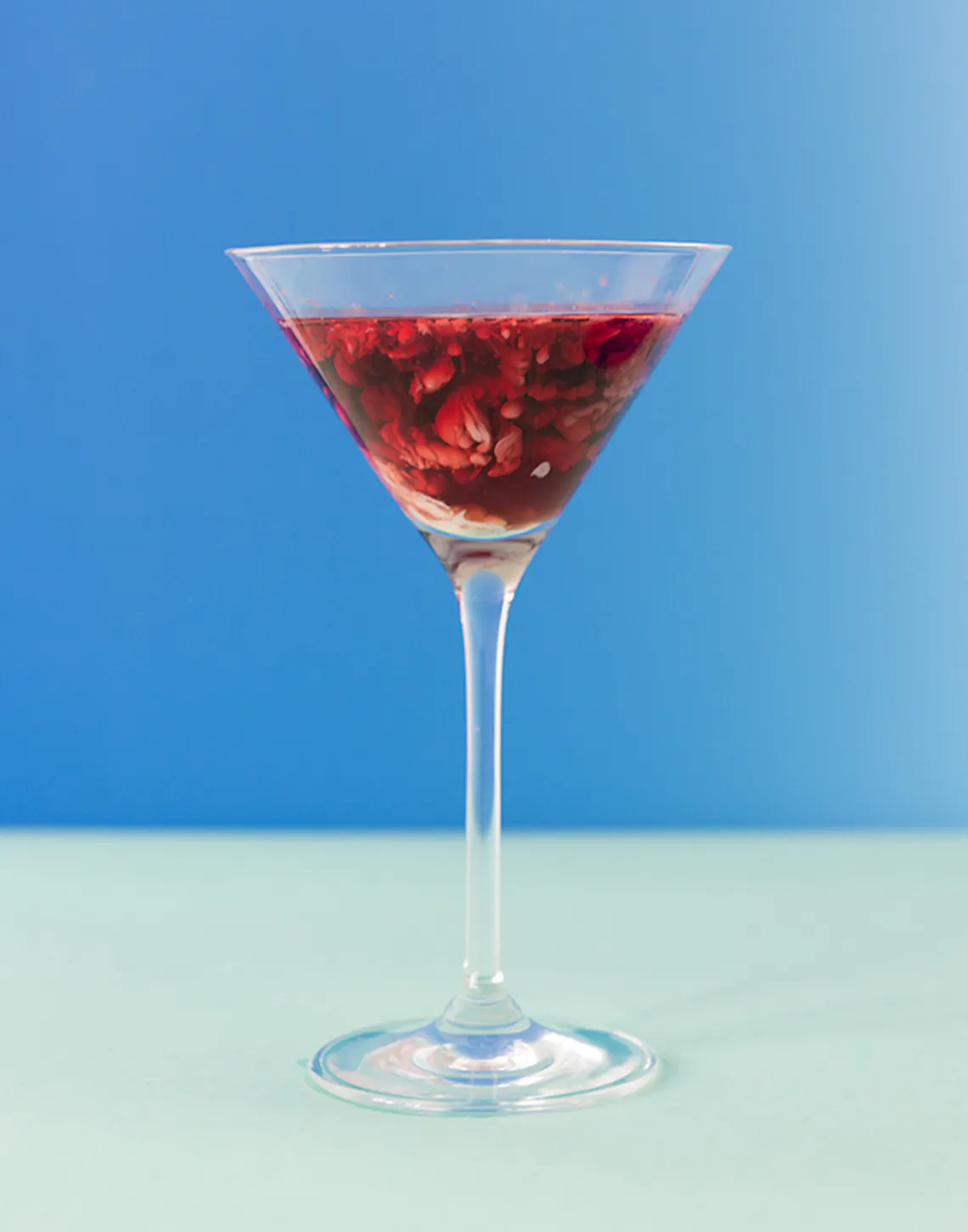 Das ist drin: Wodka mit aufgelösten Gletschereis- bonbons.